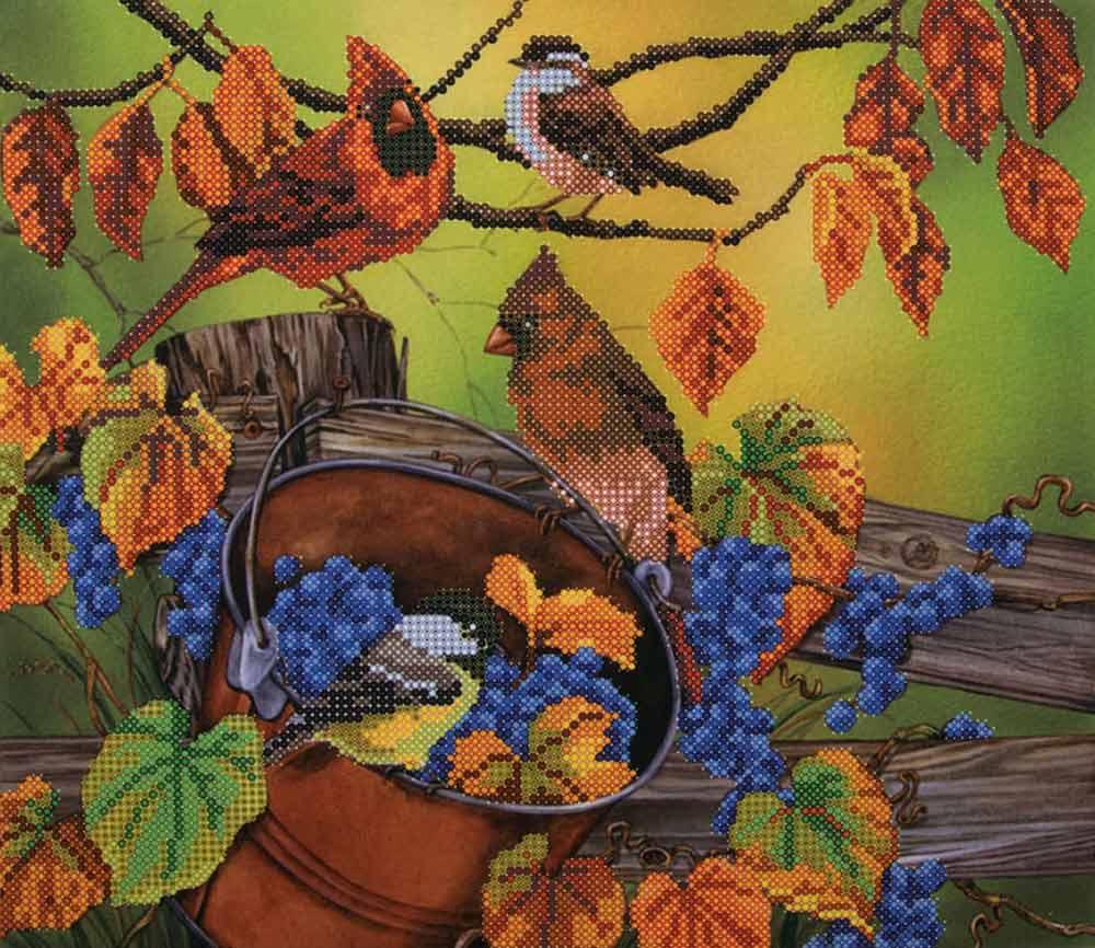 Дрозды и виноград. Рисунок на ткани для вышивки бисером