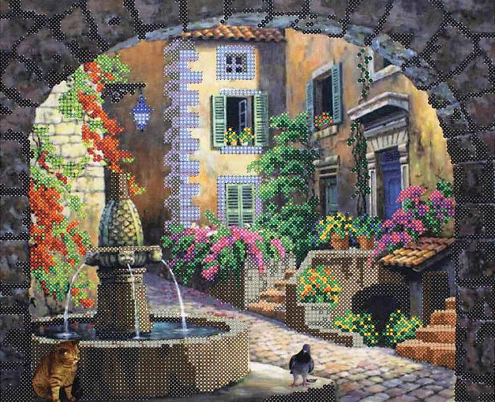 Дворик в цветах. Рисунок на ткани для вышивки бисером