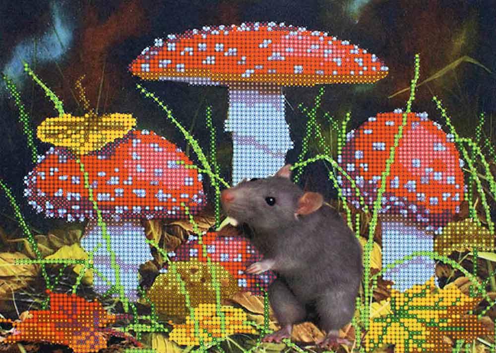 Ткань с рисунком для вышивания бисером Hobby & Pro НР-3089 "В мухоморах"